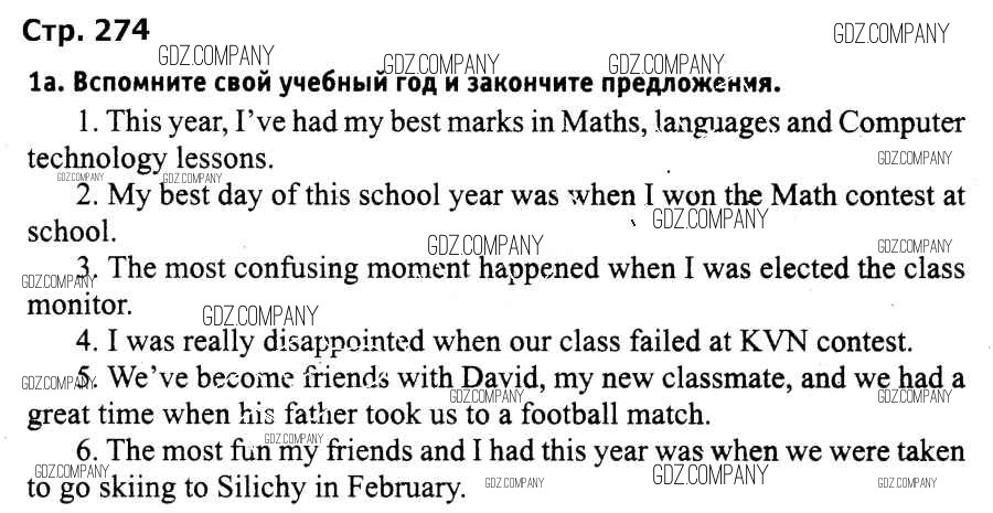 Здесь готовые ответы по Английскому языку за 9 (девятый) класс от Лапицкая, Демченко, Волков Учебник (издательство: Высшая школа от 2018 г.) № 274