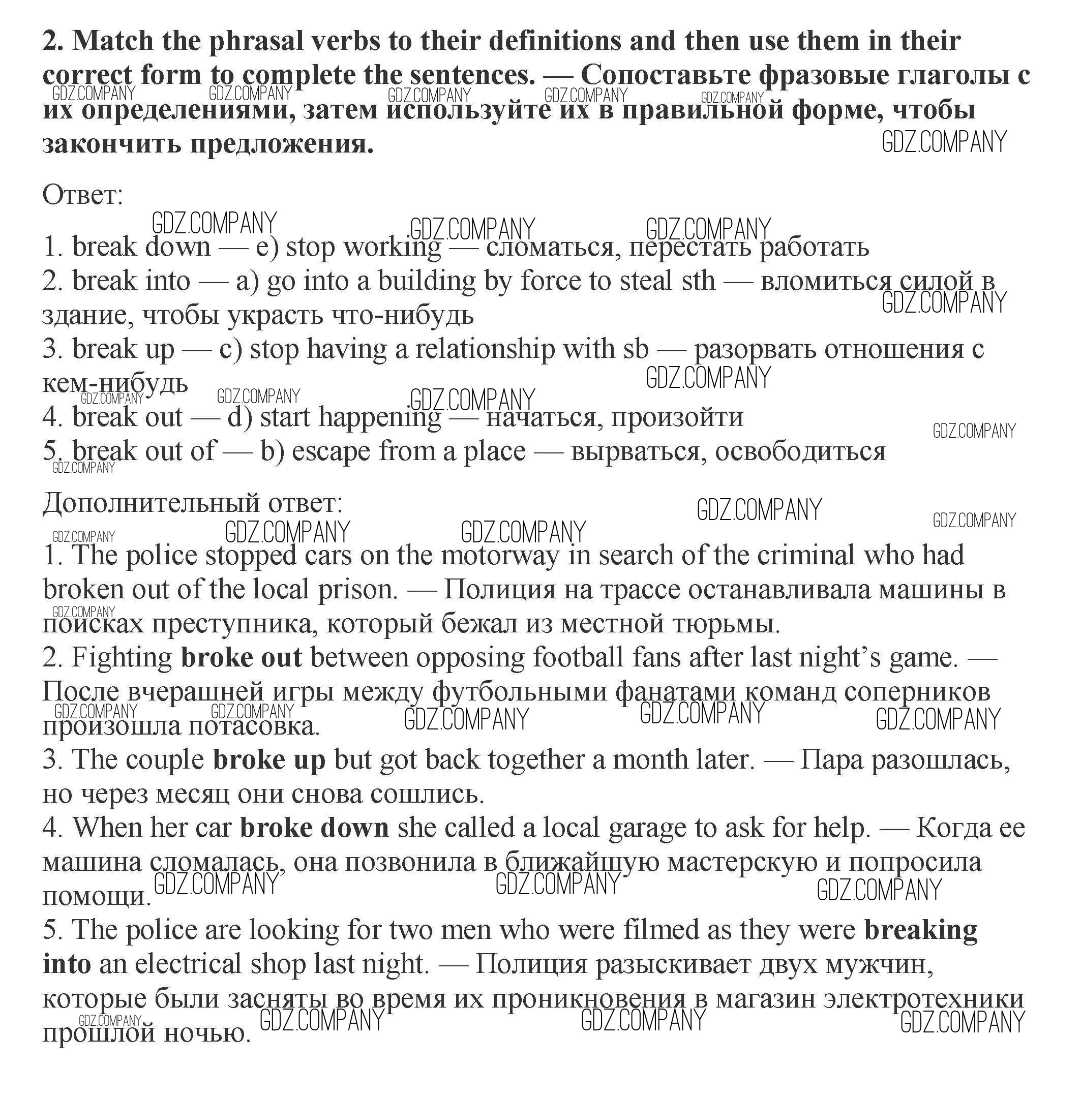 Здесь готовые ответы по Английскому языку за 9 (девятый) класс от Ваулина, Эванс, Дули, Подоляко Рабочая тетрадь (издательство: Просвещение от 2010 г.) № 2