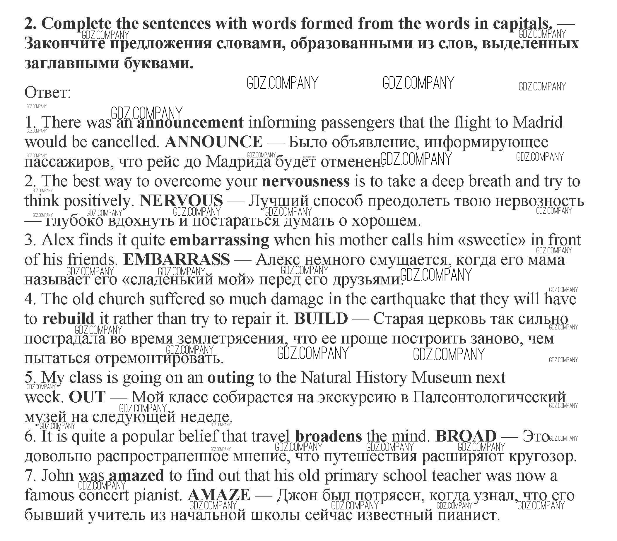 Здесь готовые ответы по Английскому языку за 9 (девятый) класс от Ваулина, Эванс, Дули, Подоляко Рабочая тетрадь (издательство: Просвещение от 2010 г.) № 2