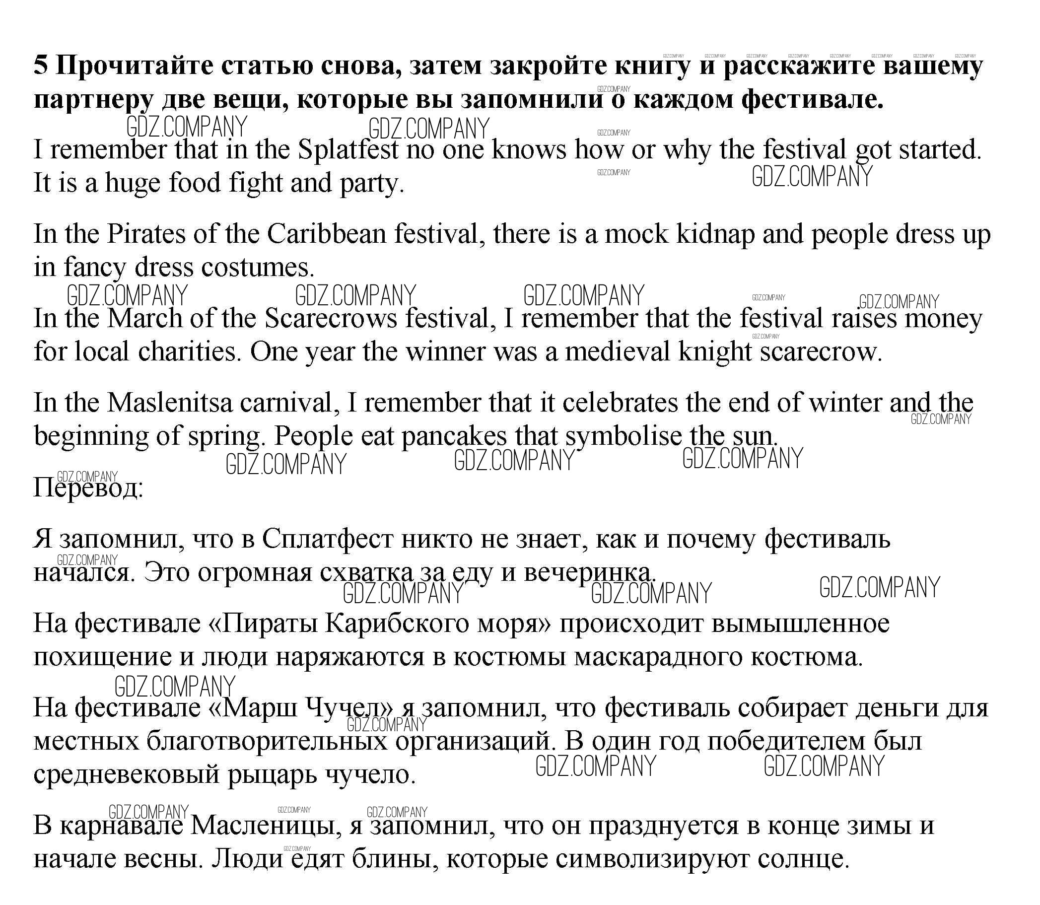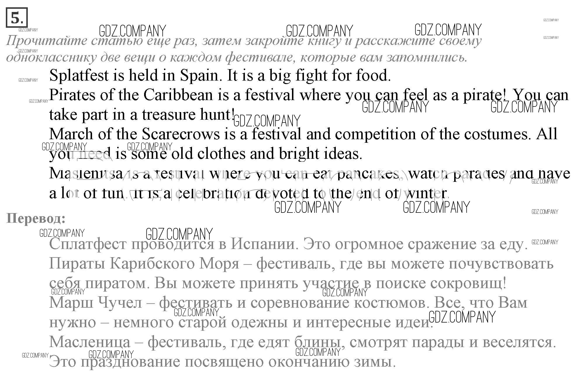 Здесь готовые ответы по Английскому языку за 9 (девятый) класс от Ваулина, Эванс, Дули, Подоляко Учебник Spotlight (издательство: Просвещение от 2010 г.) № 5