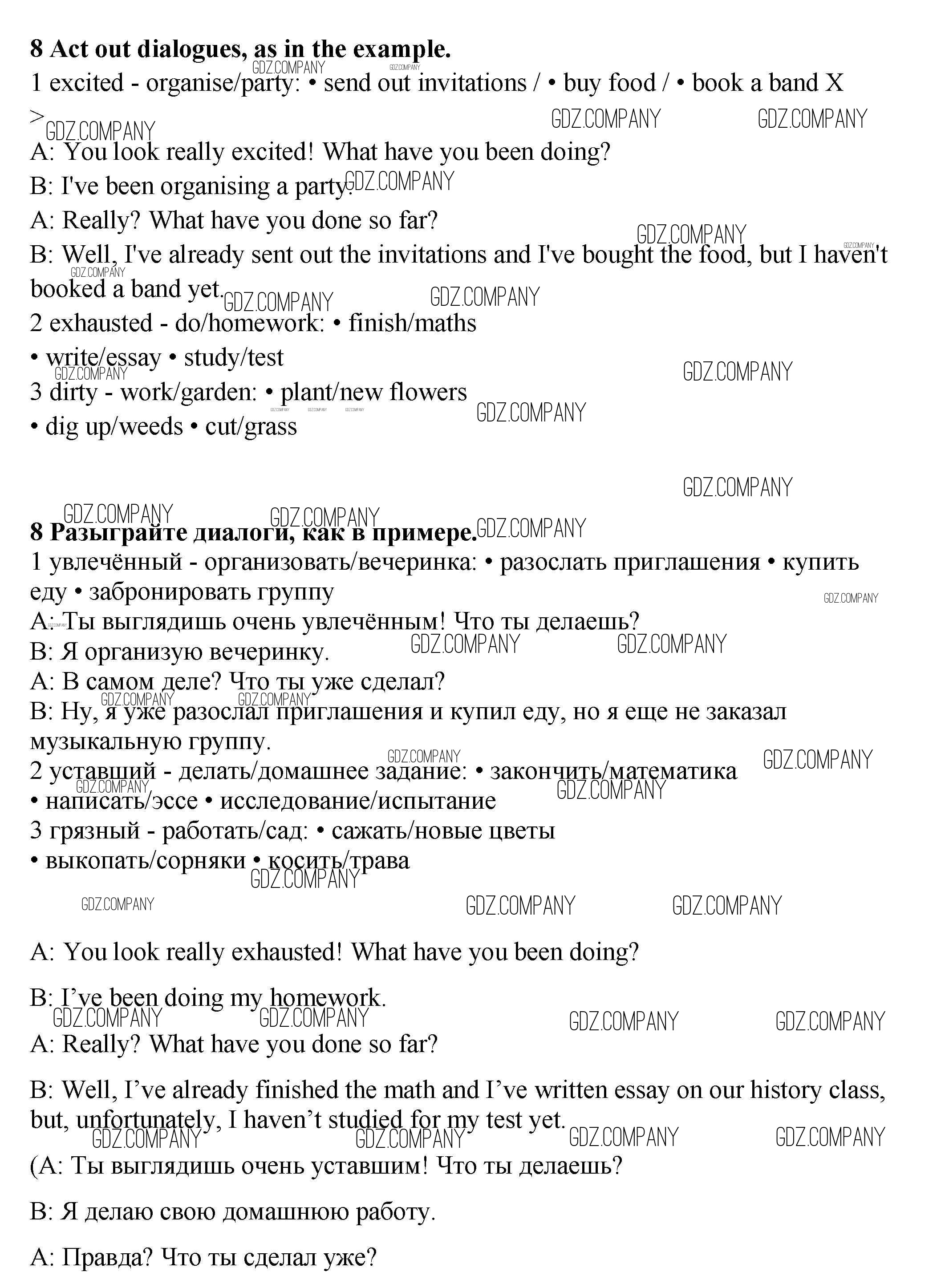 Здесь готовые ответы по Английскому языку за 9 (девятый) класс от Ваулина, Эванс, Дули, Подоляко Учебник Spotlight (издательство: Просвещение от 2010 г.) № 8