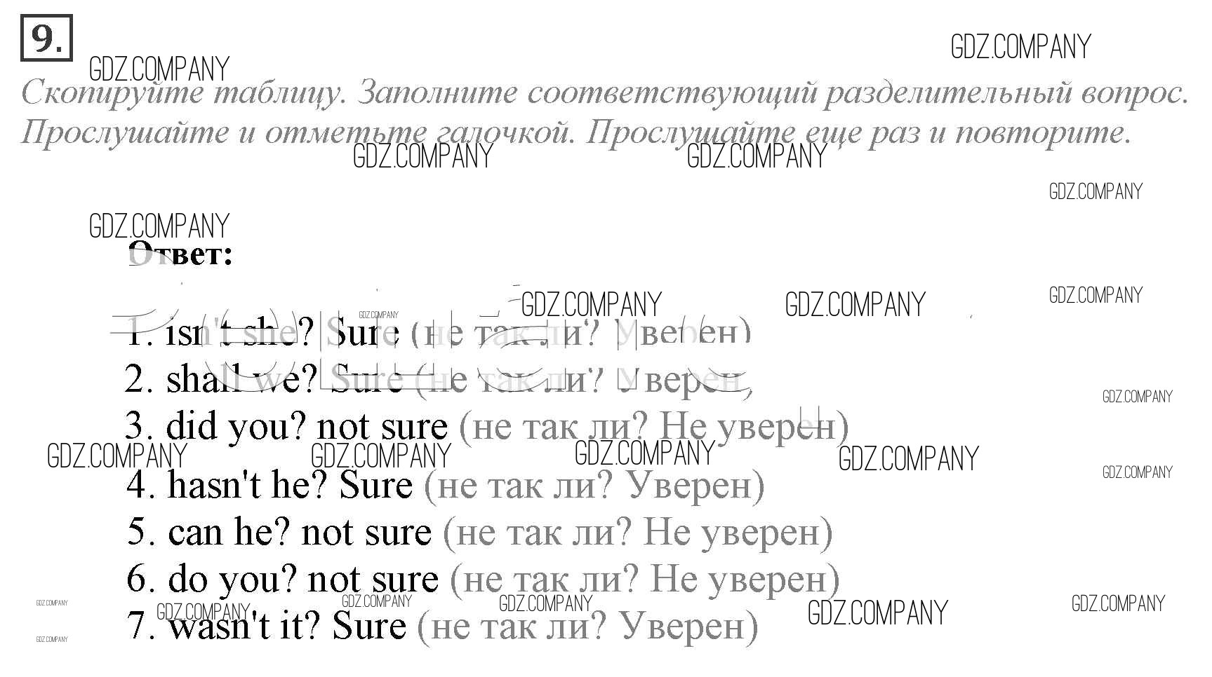 Здесь готовые ответы по Английскому языку за 9 (девятый) класс от Ваулина, Эванс, Дули, Подоляко Учебник Spotlight (издательство: Просвещение от 2010 г.) № 9