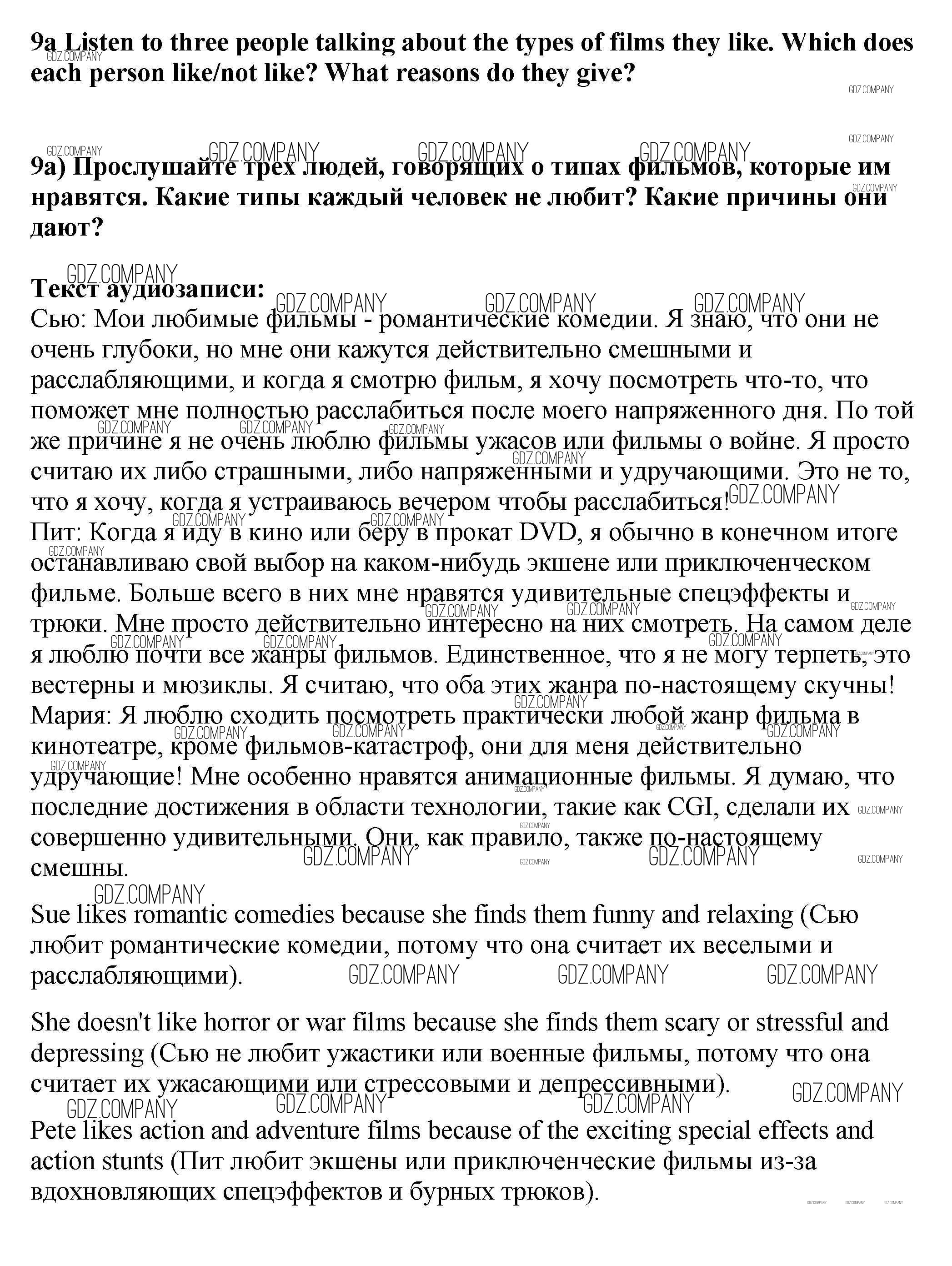 Здесь готовые ответы по Английскому языку за 9 (девятый) класс от Ваулина, Эванс, Дули, Подоляко Учебник Spotlight (издательство: Просвещение от 2010 г.) № 9a