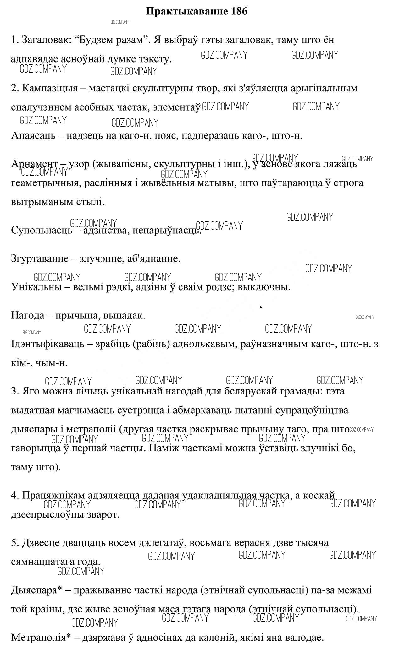 Здесь готовые ответы по Белорусскому языку за 9 (девятый) класс от Валочка, Васюковіч, Зелянко, Якуба, Байкова Учебник (издательство: Национальный институт образования от 2019 г.) № 186