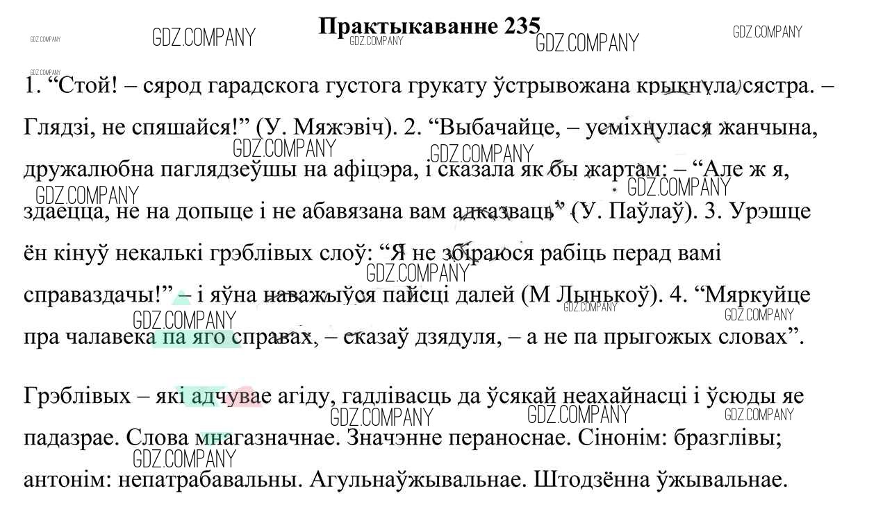 Здесь готовые ответы по Белорусскому языку за 9 (девятый) класс от Валочка, Васюковіч, Зелянко, Якуба, Байкова Учебник (издательство: Национальный институт образования от 2019 г.) № 235