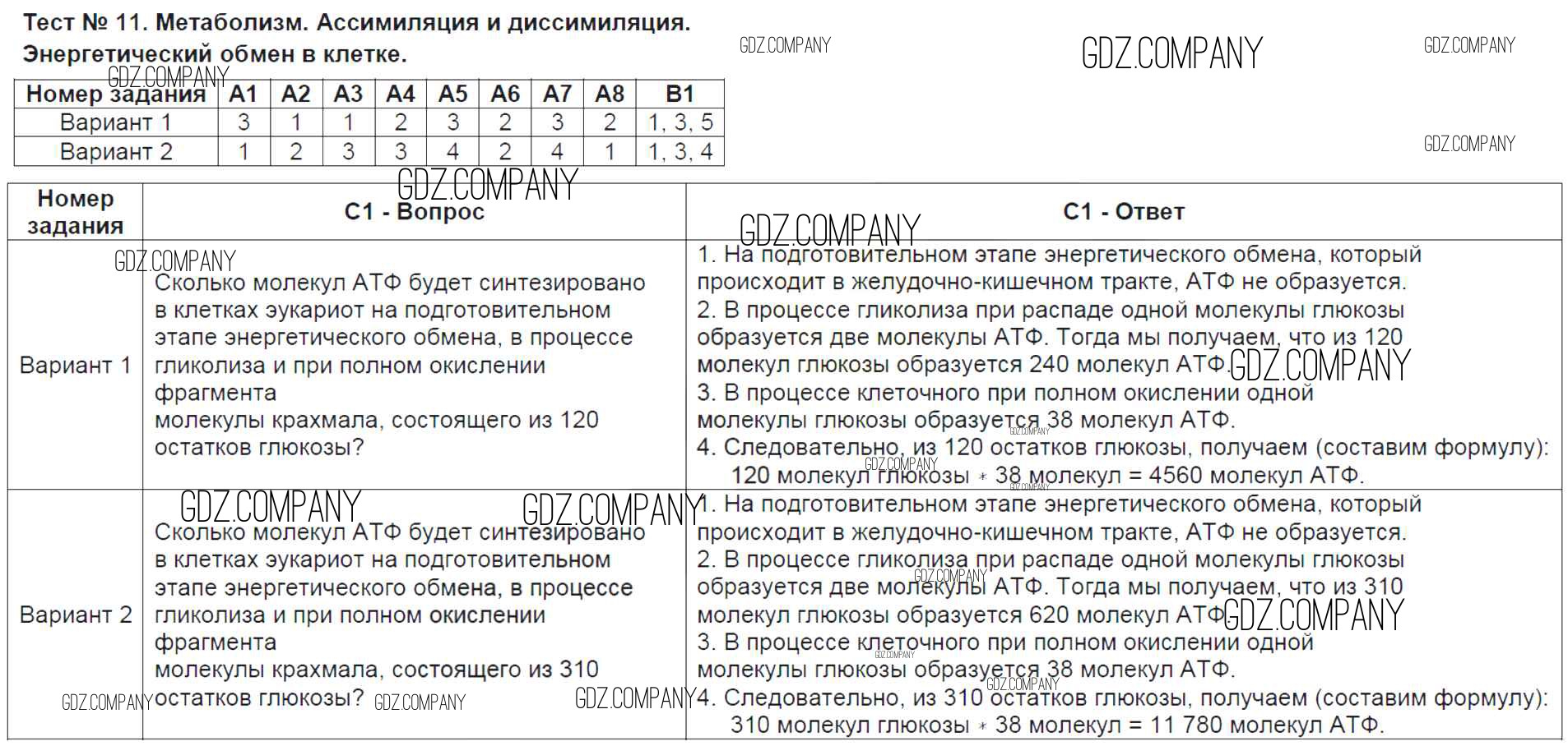 Здесь готовые ответы по Биологии за 9 (девятый) класс от Богданов Контрольно-измерительные материалы (КИМ) (издательство: ВАКО от 2017 г.) № Тест №11. Метаболизм. Ассимиляция и диссимиляция