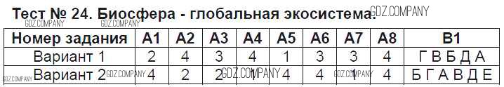 Здесь готовые ответы по Биологии за 9 (девятый) класс от Богданов Контрольно-измерительные материалы (КИМ) (издательство: ВАКО от 2017 г.) № Тест №24. Биосфера - глобальная экосистема