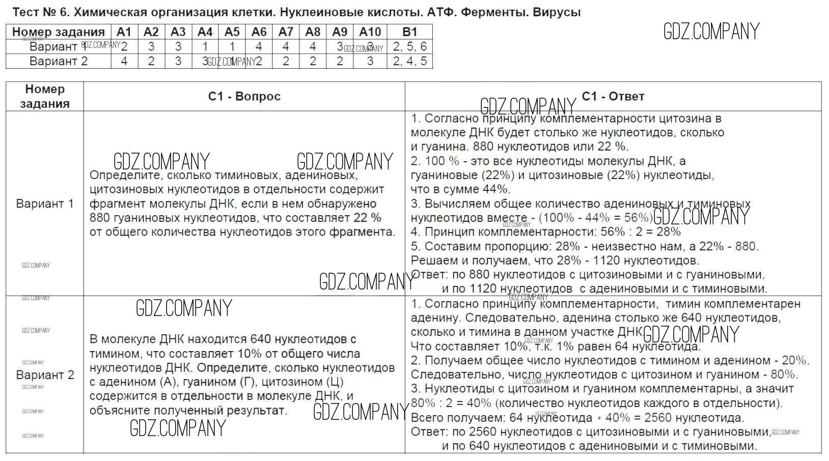 Здесь готовые ответы по Биологии за 9 (девятый) класс от Богданов Контрольно-измерительные материалы (КИМ) (издательство: ВАКО от 2017 г.) № Тест №6. Химическая организация клетки. Нуклеиновые кислоты. АТФ. Ферменты. Вирусы
