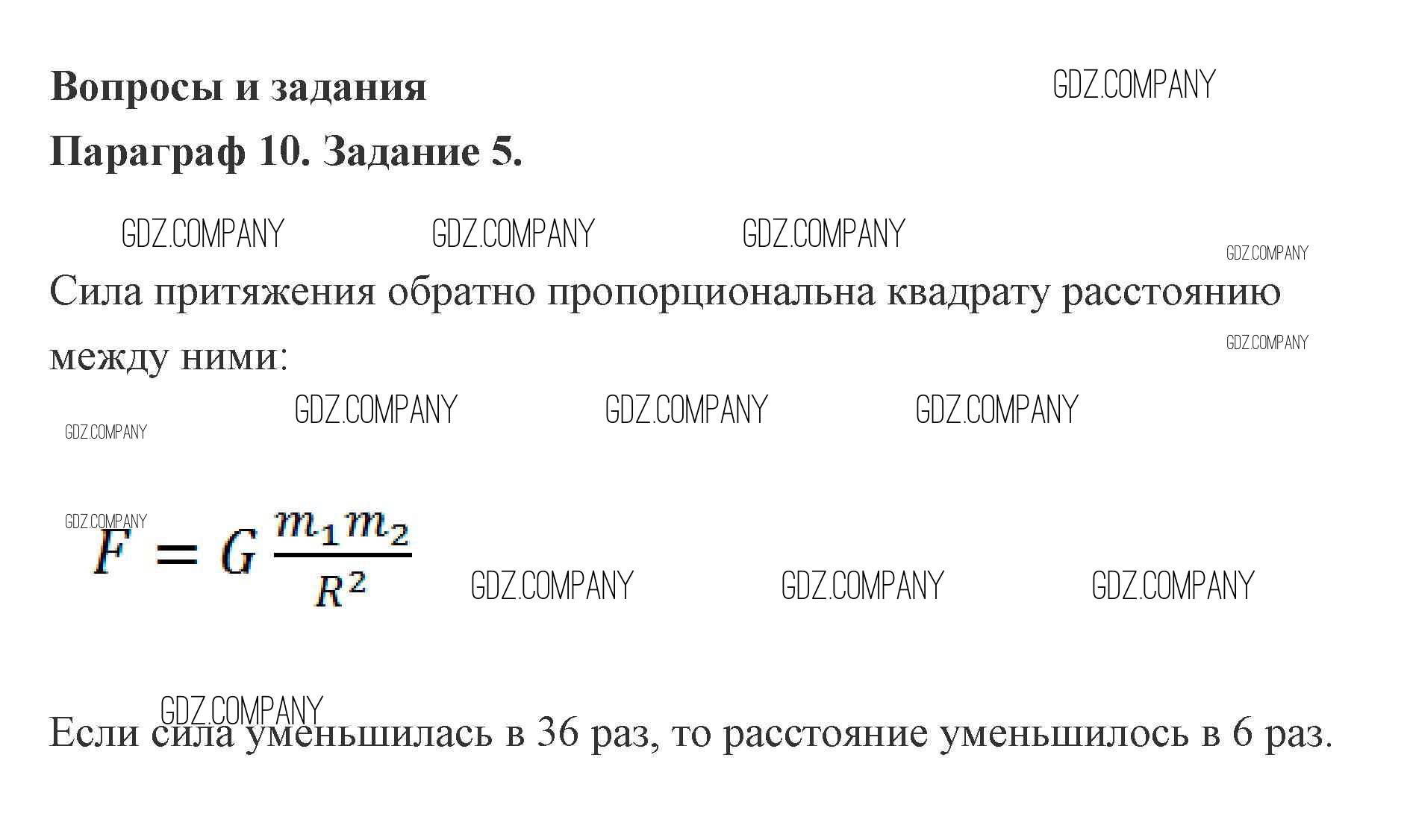 механические явления / 10. Закон всемирного тяготения / задание / 5