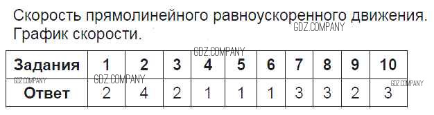 Здесь готовые ответы по Физике за 9 (девятый) класс от Громцева Тесты УМК  (издательство: Экзамен от 2017 г.) № Скорость прямолинейного равноускоренного движения.  График скорости