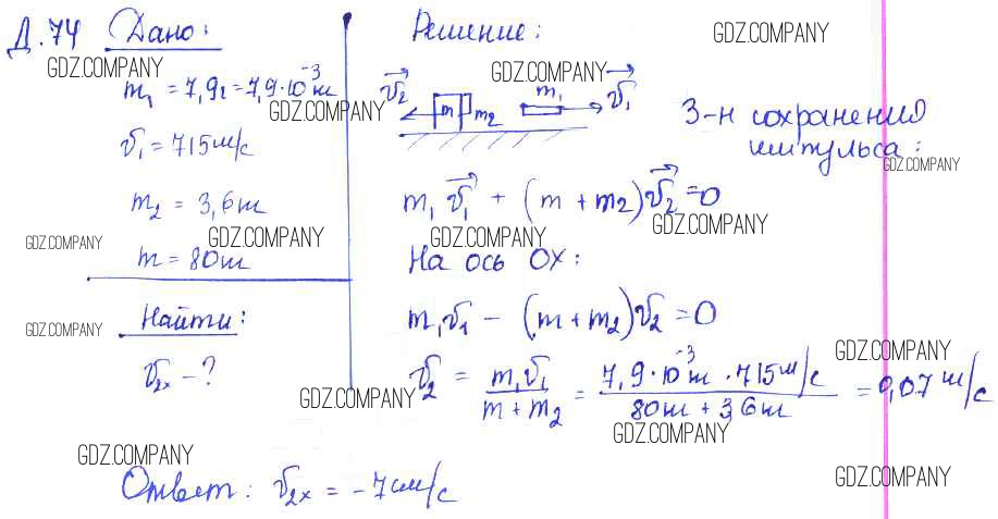 Здесь готовые ответы по Физике за 9 (седьмой) класс от Лукашик, Иванова Сборник задач (издательство: Просвещение от 2011 г.) № 74