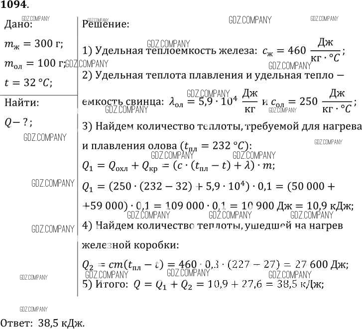 Здесь готовые ответы по Физике за 9 (седьмой) класс от Лукашик, Иванова Сборник задач (издательство: Просвещение от 2011 г.) № 1094
