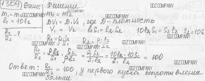 Здесь готовые ответы по Физике за 9 (седьмой) класс от Лукашик, Иванова Сборник задач (издательство: Просвещение от 2011 г.) № 1309