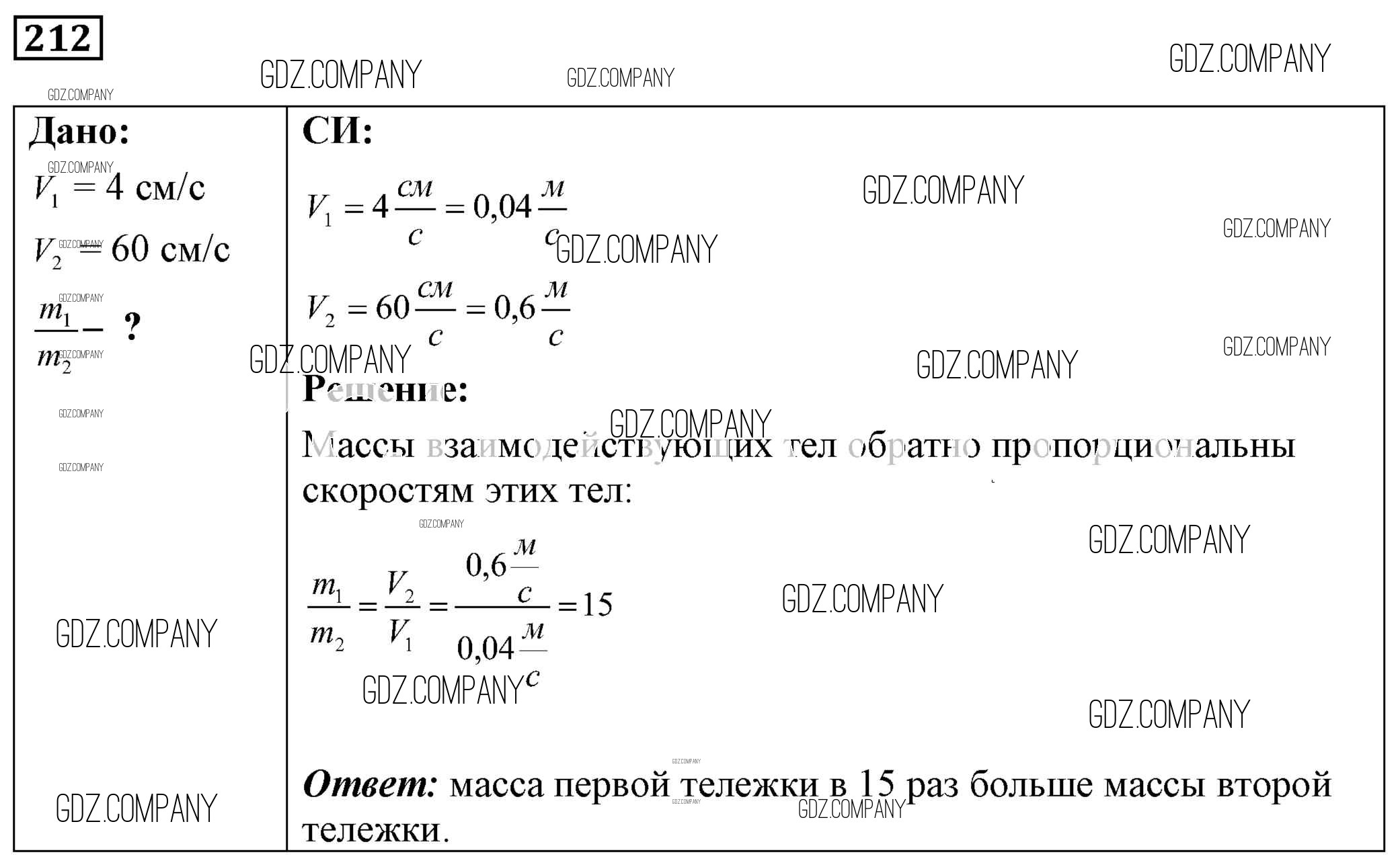 Здесь готовые ответы по Физике за 9 (седьмой) класс от Лукашик, Иванова Сборник задач (издательство: Просвещение от 2011 г.) № 212