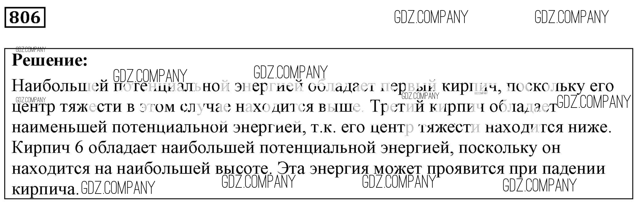 Здесь готовые ответы по Физике за 9 (седьмой) класс от Лукашик, Иванова Сборник задач (издательство: Просвещение от 2011 г.) № 806