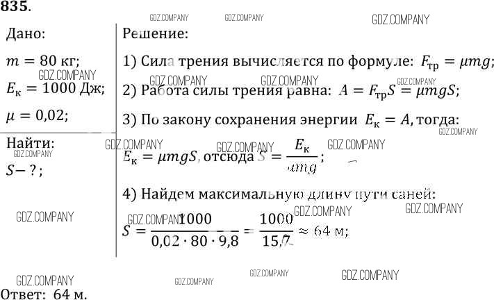 Здесь готовые ответы по Физике за 9 (седьмой) класс от Лукашик, Иванова Сборник задач (издательство: Просвещение от 2011 г.) № 835