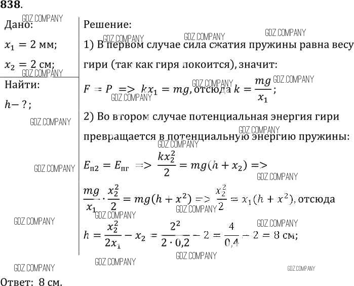 Здесь готовые ответы по Физике за 9 (седьмой) класс от Лукашик, Иванова Сборник задач (издательство: Просвещение от 2011 г.) № 838