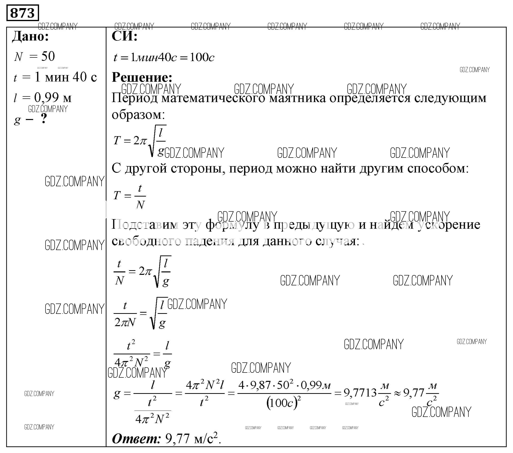 Здесь готовые ответы по Физике за 9 (седьмой) класс от Лукашик, Иванова Сборник задач (издательство: Просвещение от 2011 г.) № 873