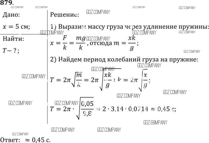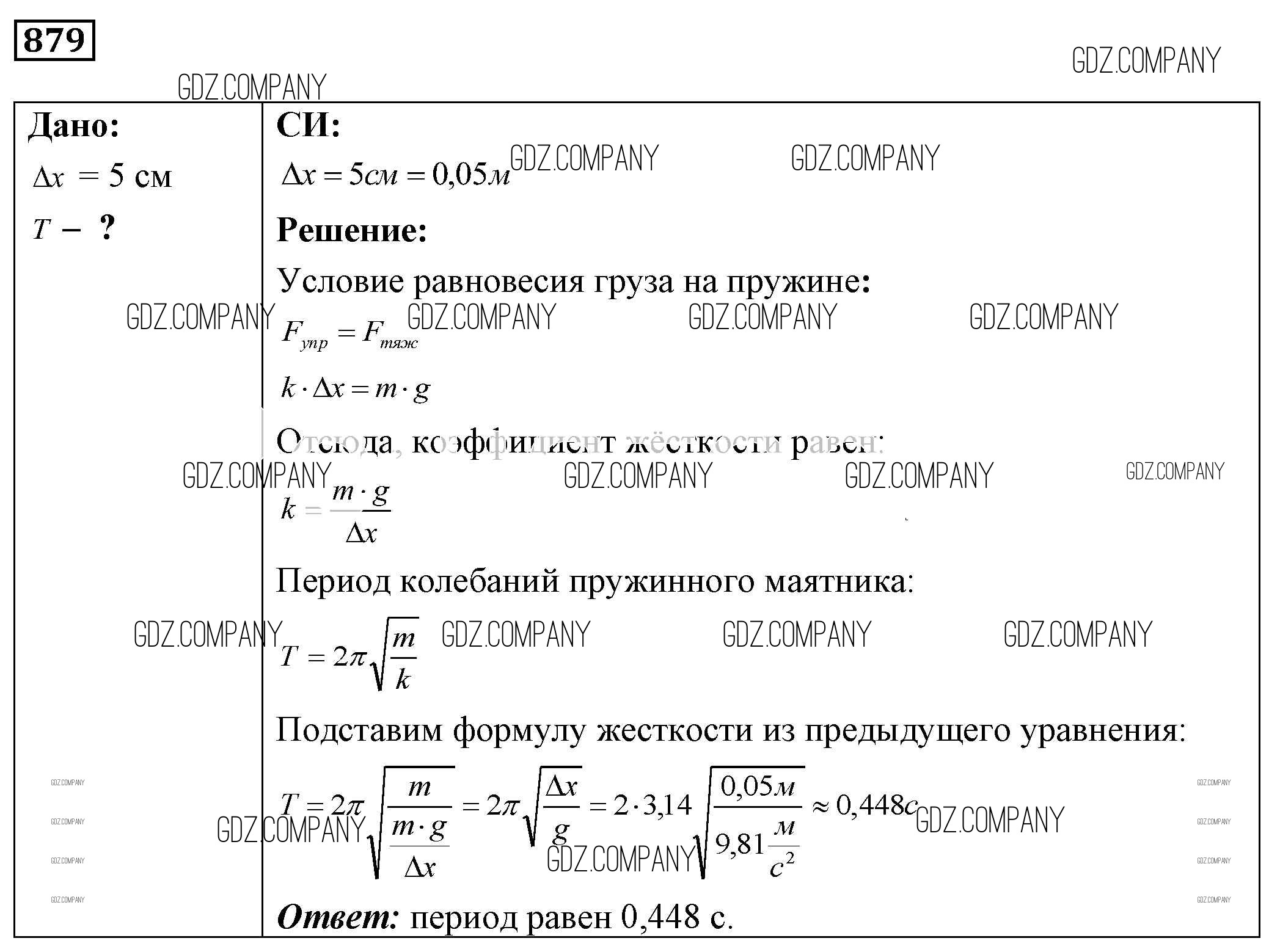 Здесь готовые ответы по Физике за 9 (седьмой) класс от Лукашик, Иванова Сборник задач (издательство: Просвещение от 2011 г.) № 879