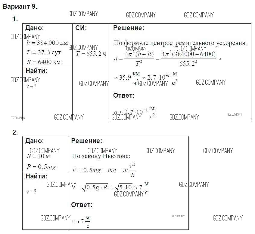 Здесь готовые ответы по Физике за 9 (девятый) класс от Марон Дидактические материалы УМК (издательство: Дрофа от 2019 г.) № 9