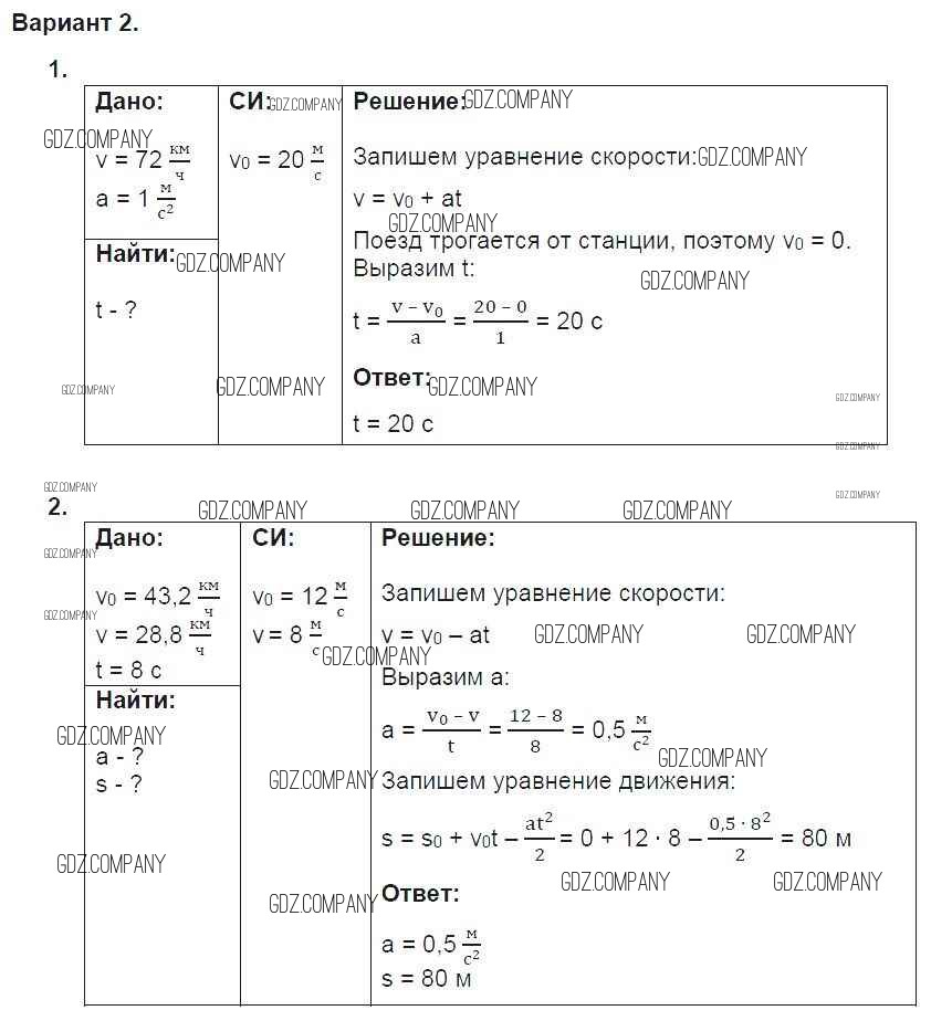 Здесь готовые ответы по Физике за 9 (девятый) класс от Марон Дидактические материалы УМК (издательство: Дрофа от 2019 г.) № 2
