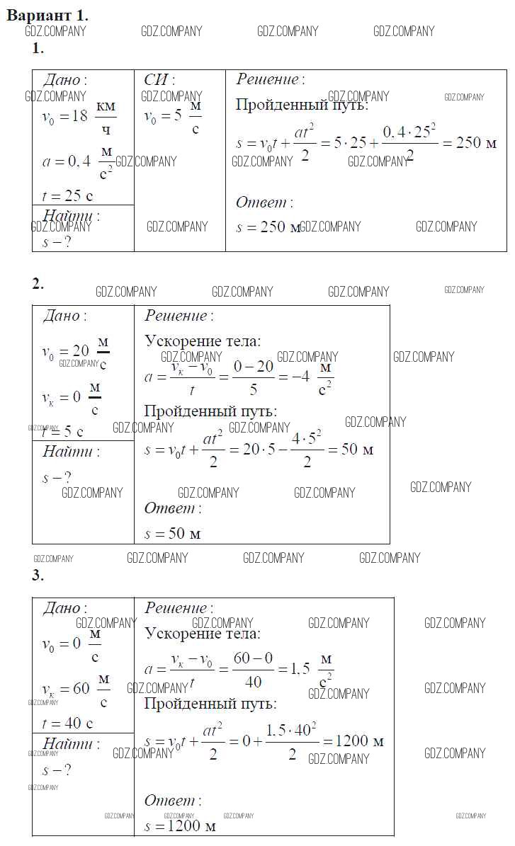 Здесь готовые ответы по Физике за 9 (девятый) класс от Марон Самостоятельные и контрольные работы УМК  (издательство: Дрофа от 2018 г.) № 1