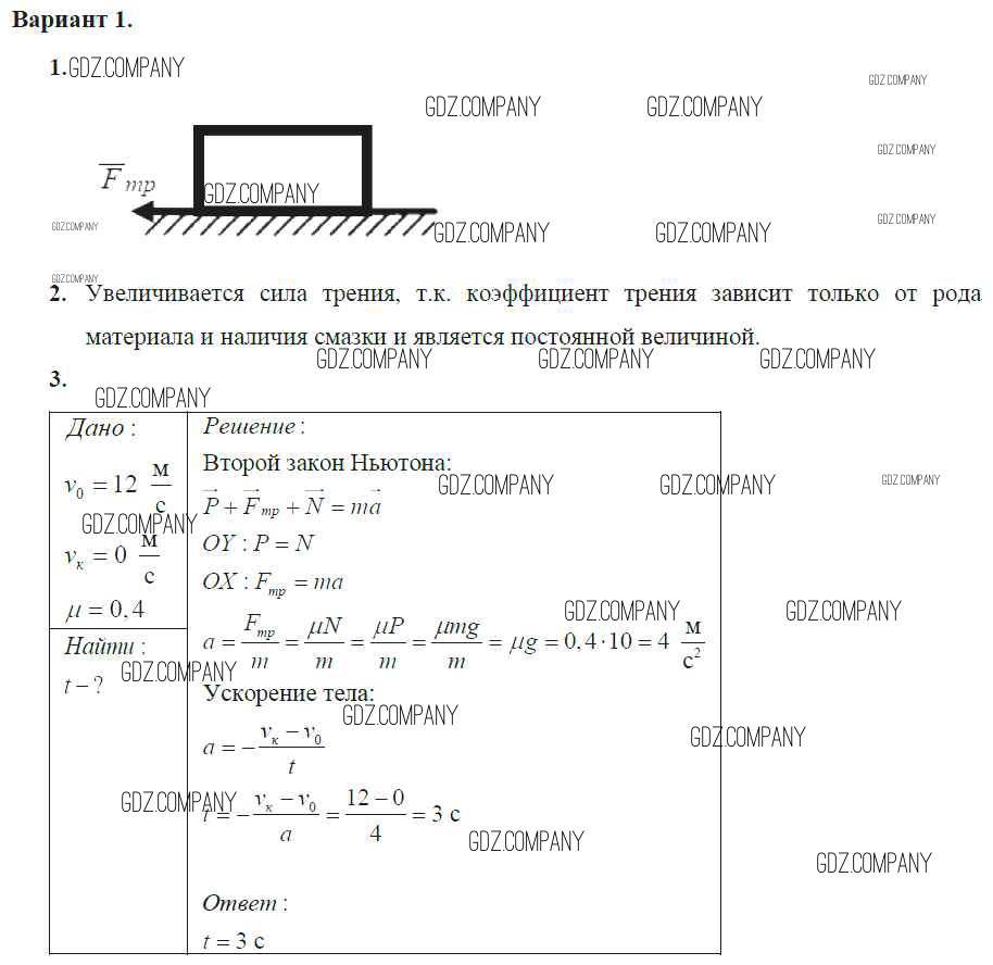 Здесь готовые ответы по Физике за 9 (девятый) класс от Марон Самостоятельные и контрольные работы УМК  (издательство: Дрофа от 2018 г.) № 1