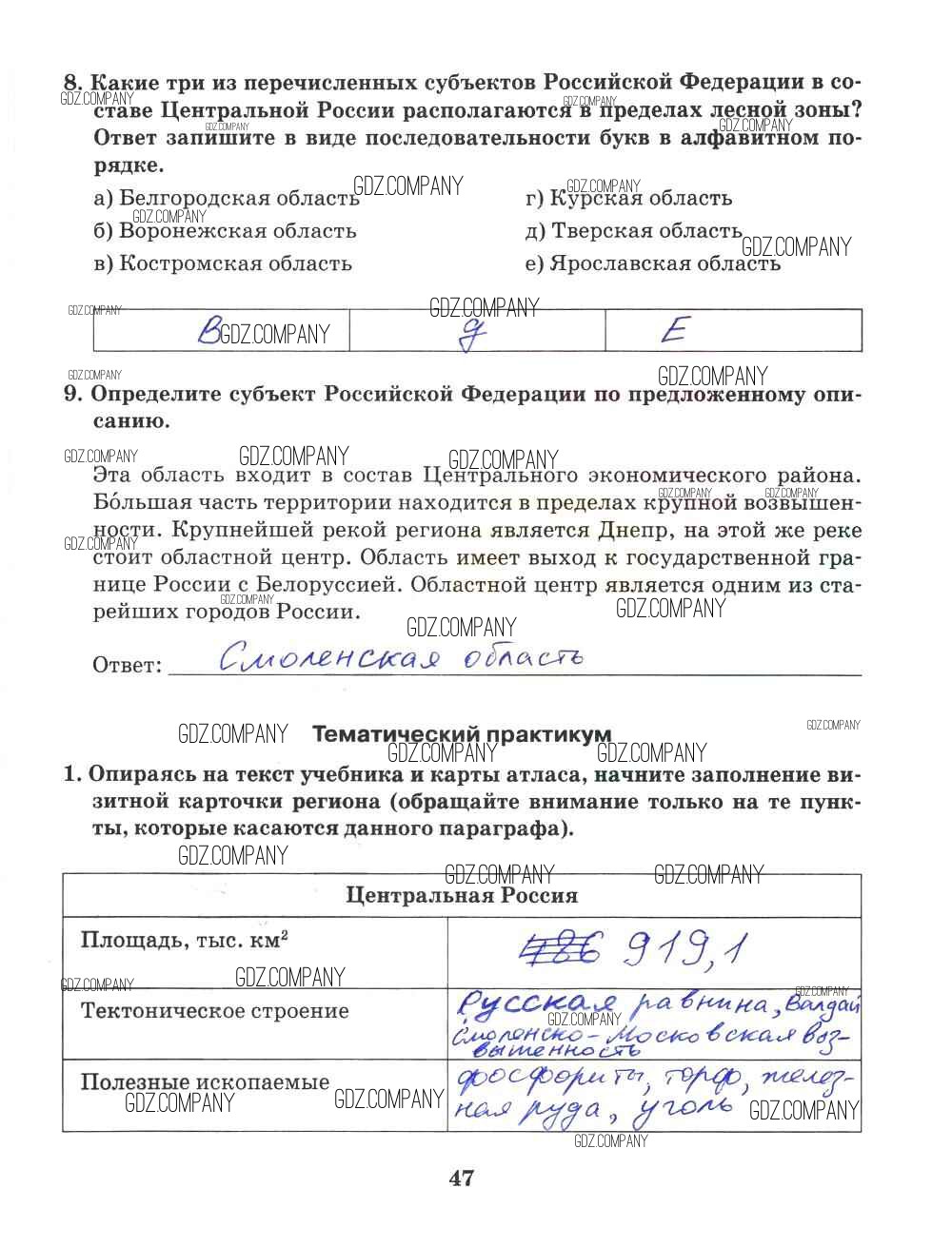 Здесь готовые ответы по Географии за 9 (девятый) класс от Домогацких Рабочая тетрадь Инновационная школа (издательство: Русское слово от 2018 г.) № 47