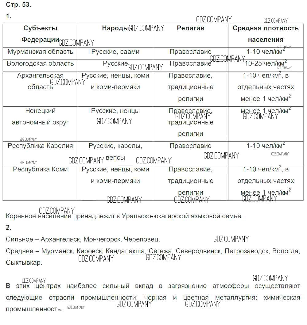 Здесь готовые ответы по Географии за 9 (девятый) класс от Ходова, Ольховая Тетрадь-тренажер Сферы (издательство: Просвещение от 2016 г.) № стр.53
