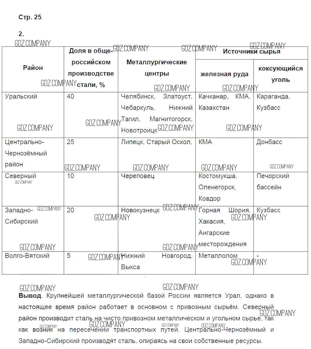 Здесь готовые ответы по Географии за 9 (девятый) класс от Ким, Марченко, Низовцев Рабочая тетрадь Вертикаль (издательство: Дрофа от 2017 г.) № 25
