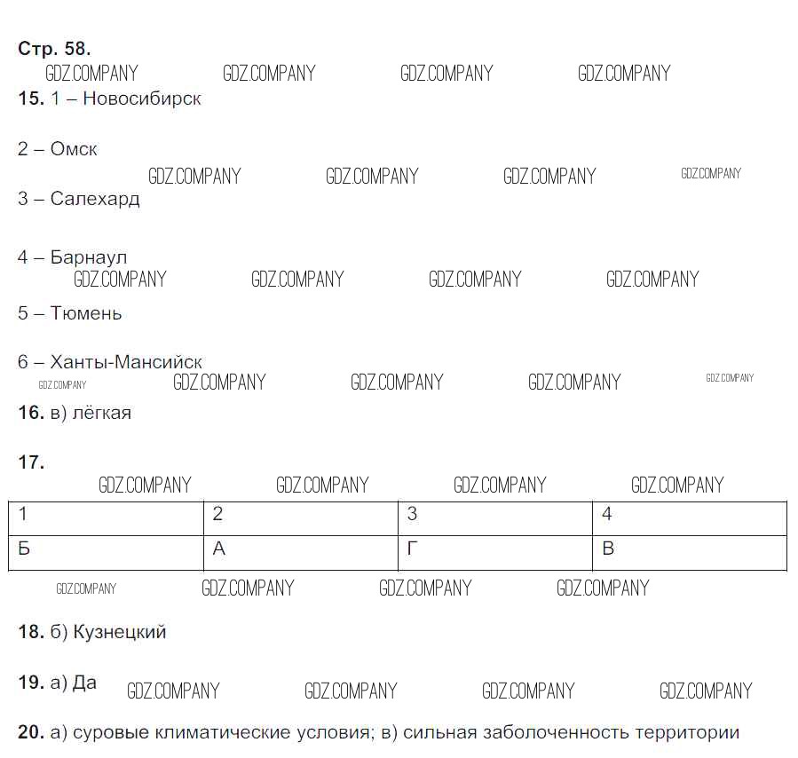 Здесь готовые ответы по Географии за 9 (девятый) класс от Николина Тетрадь-тренажер Полярная звезда (издательство: Просвещение от 2016 г.) № 58