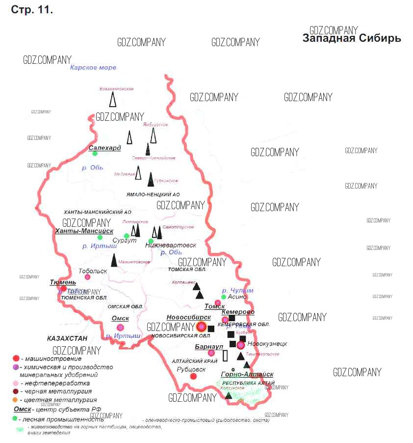 Здесь готовые ответы по Географии за 9 (девятый) класс от Приваловский Контурные карты (издательство: Дрофа от 2020 г.) № стр.11. Западная Сибирь