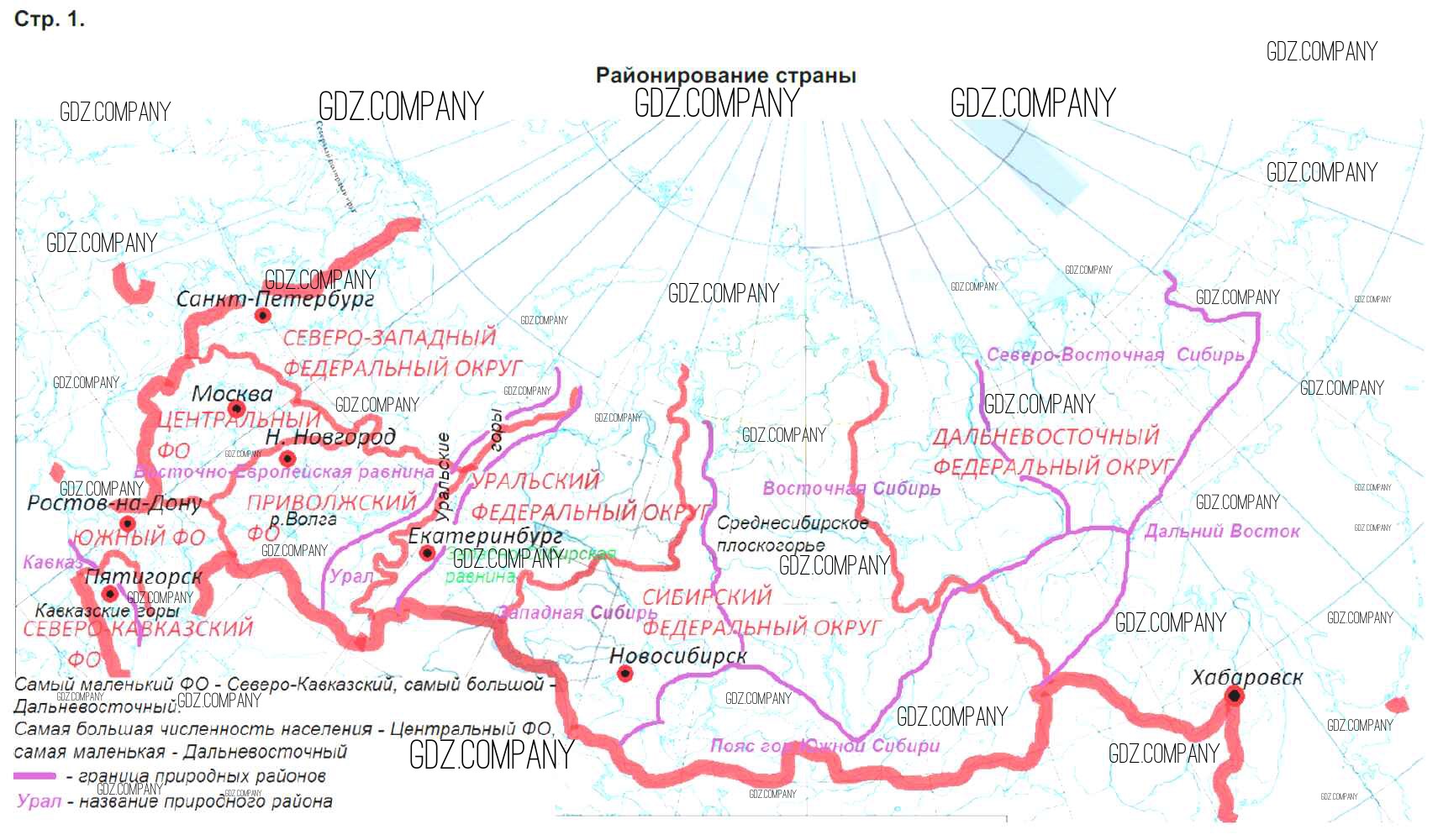 Здесь готовые ответы по Географии за 9 (девятый) класс от Приваловский Контурные карты (издательство: Дрофа от 2020 г.) № стр.1. Районирование страны