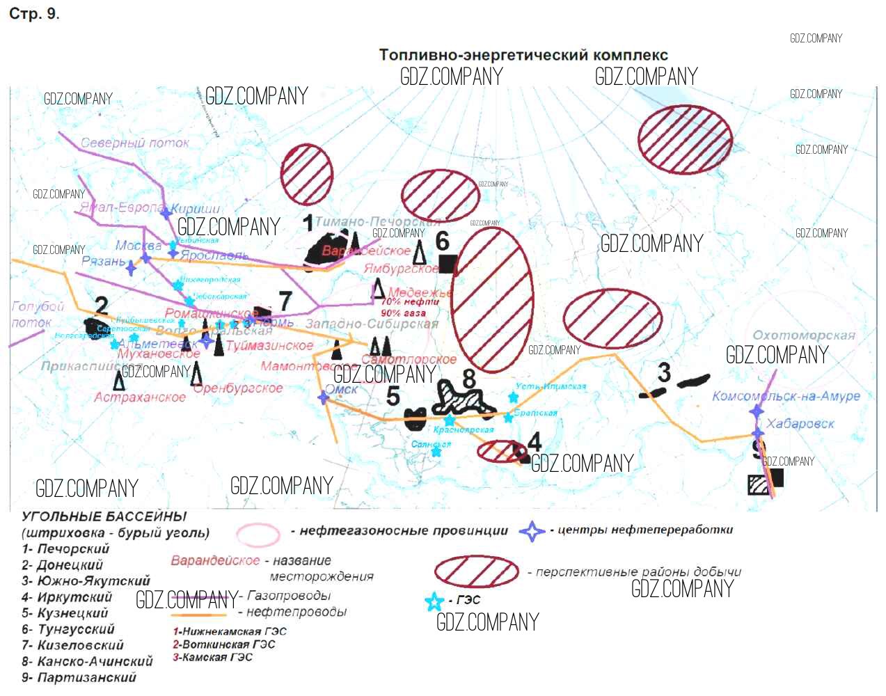 Здесь готовые ответы по Географии за 9 (девятый) класс от Приваловский Контурные карты (издательство: Дрофа от 2020 г.) № стр.9. Топливо-энергетический комплекс-2