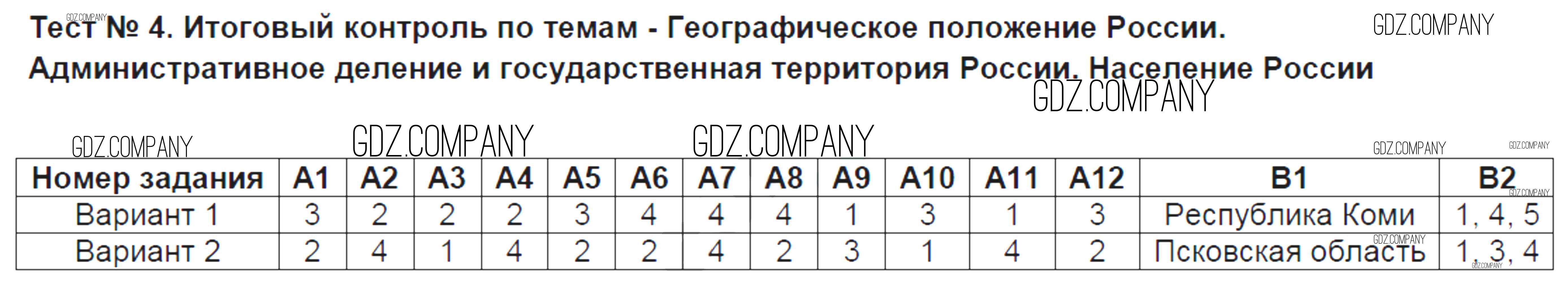тест / тест №4. Итоговый контроль по темам - Географическое положение России