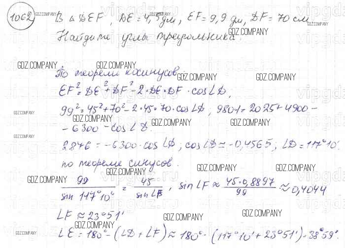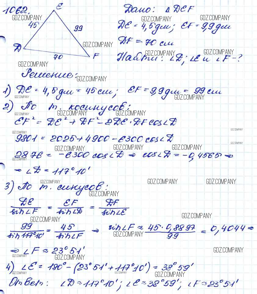 Здесь готовые ответы по Геометрии за 9 (седьмой) класс от Атанасян, Бутузов, Кадомцев Учебник (издательство: Просвещение от 2010 г.) № 1062