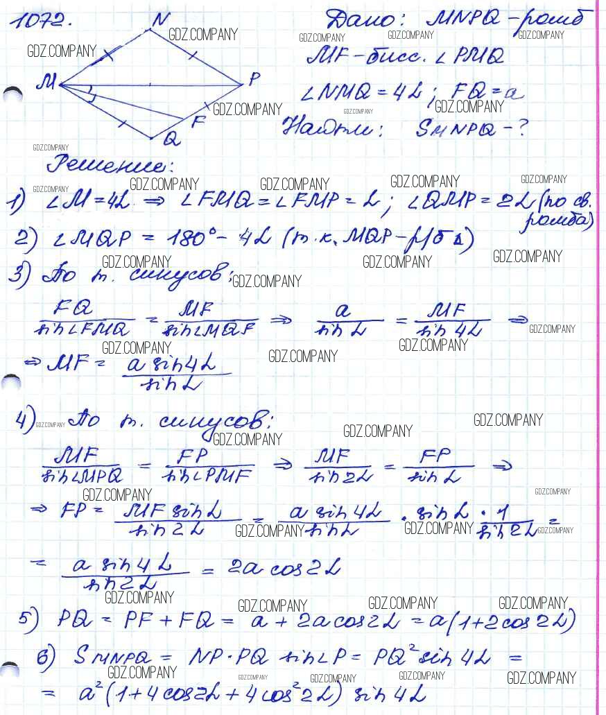 Здесь готовые ответы по Геометрии за 9 (седьмой) класс от Атанасян, Бутузов, Кадомцев Учебник (издательство: Просвещение от 2010 г.) № 1072