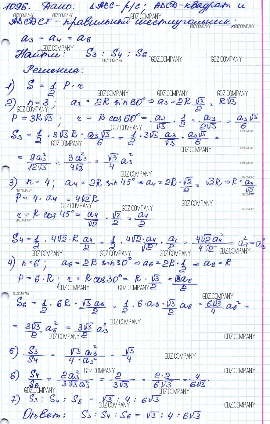 Здесь готовые ответы по Геометрии за 9 (седьмой) класс от Атанасян, Бутузов, Кадомцев Учебник (издательство: Просвещение от 2010 г.) № 1096