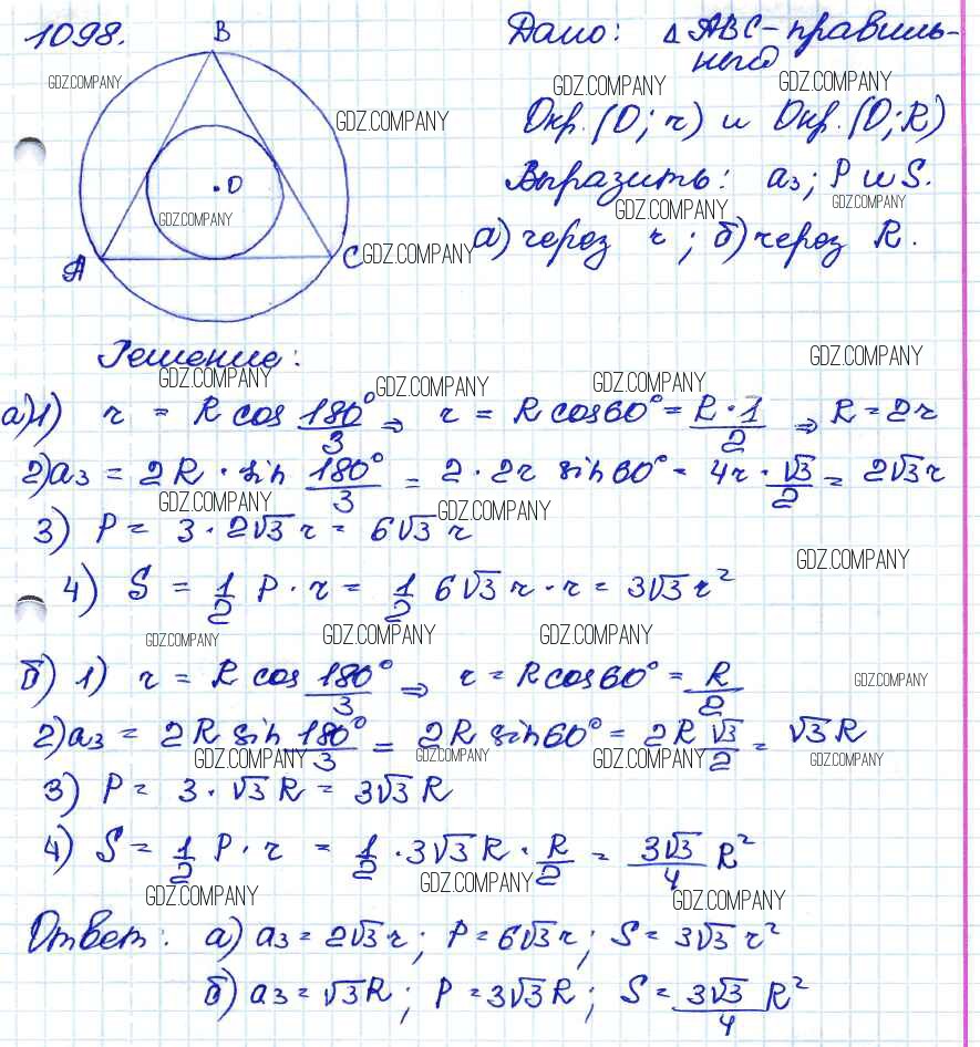 Здесь готовые ответы по Геометрии за 9 (седьмой) класс от Атанасян, Бутузов, Кадомцев Учебник (издательство: Просвещение от 2010 г.) № 1098