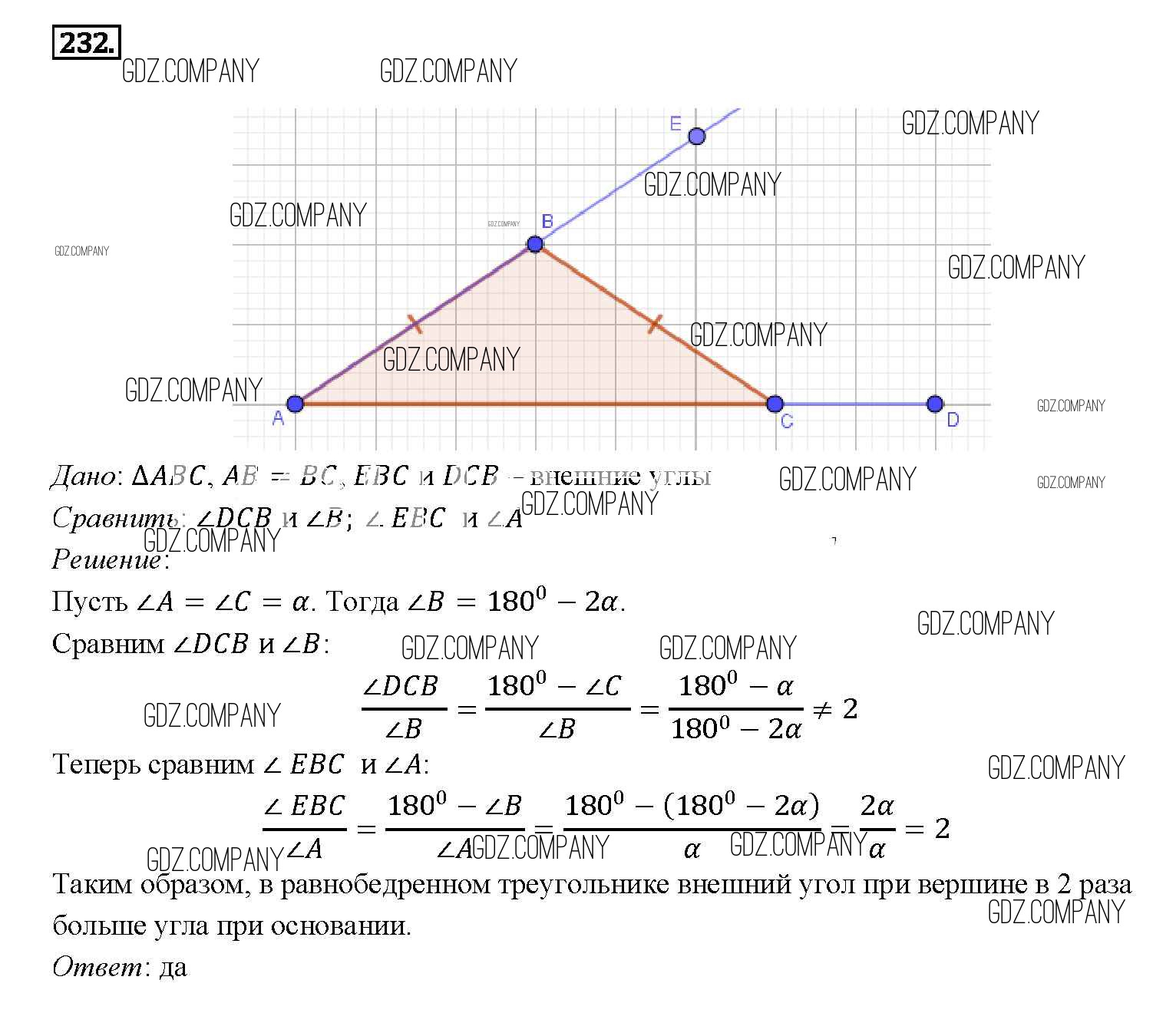 Здесь готовые ответы по Геометрии за 9 (седьмой) класс от Атанасян, Бутузов, Кадомцев Учебник (издательство: Просвещение от 2010 г.) № 232