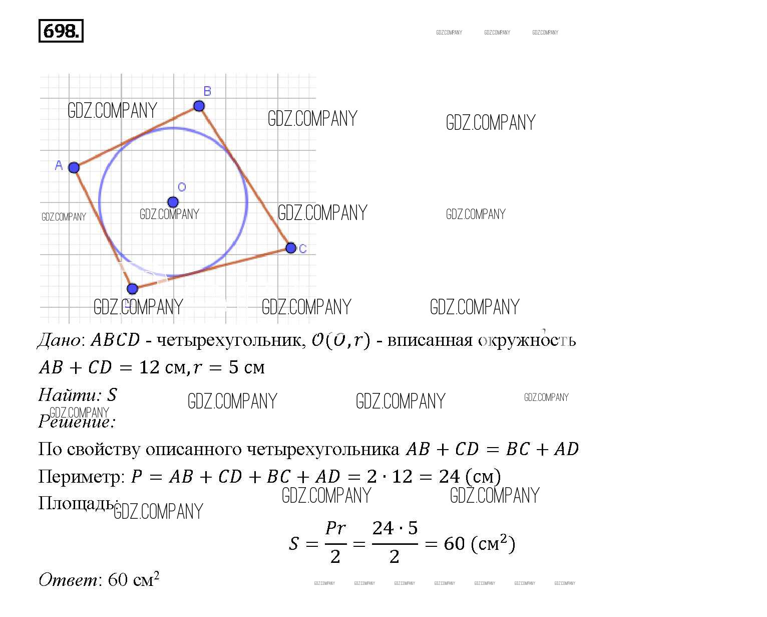 Здесь готовые ответы по Геометрии за 9 (седьмой) класс от Атанасян, Бутузов, Кадомцев Учебник (издательство: Просвещение от 2010 г.) № 698