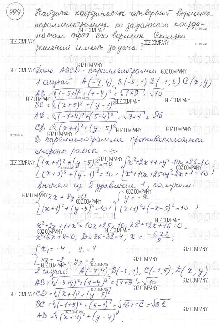 Здесь готовые ответы по Геометрии за 9 (седьмой) класс от Атанасян, Бутузов, Кадомцев Учебник (издательство: Просвещение от 2010 г.) № 999