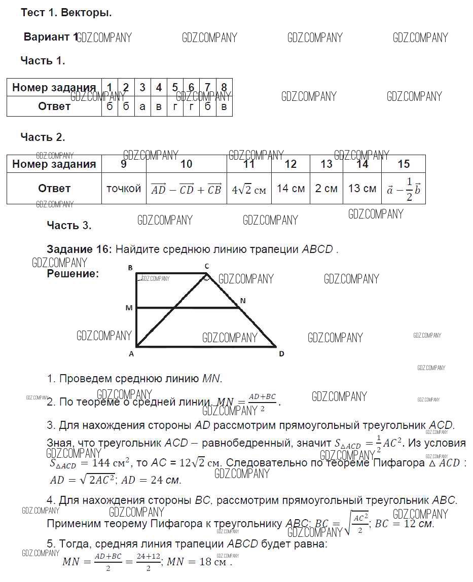 Здесь готовые ответы по Геометрии за 9 (девятый) класс от Фарков Тесты УМК (издательство: Экзамен от 2016 г.) № 1