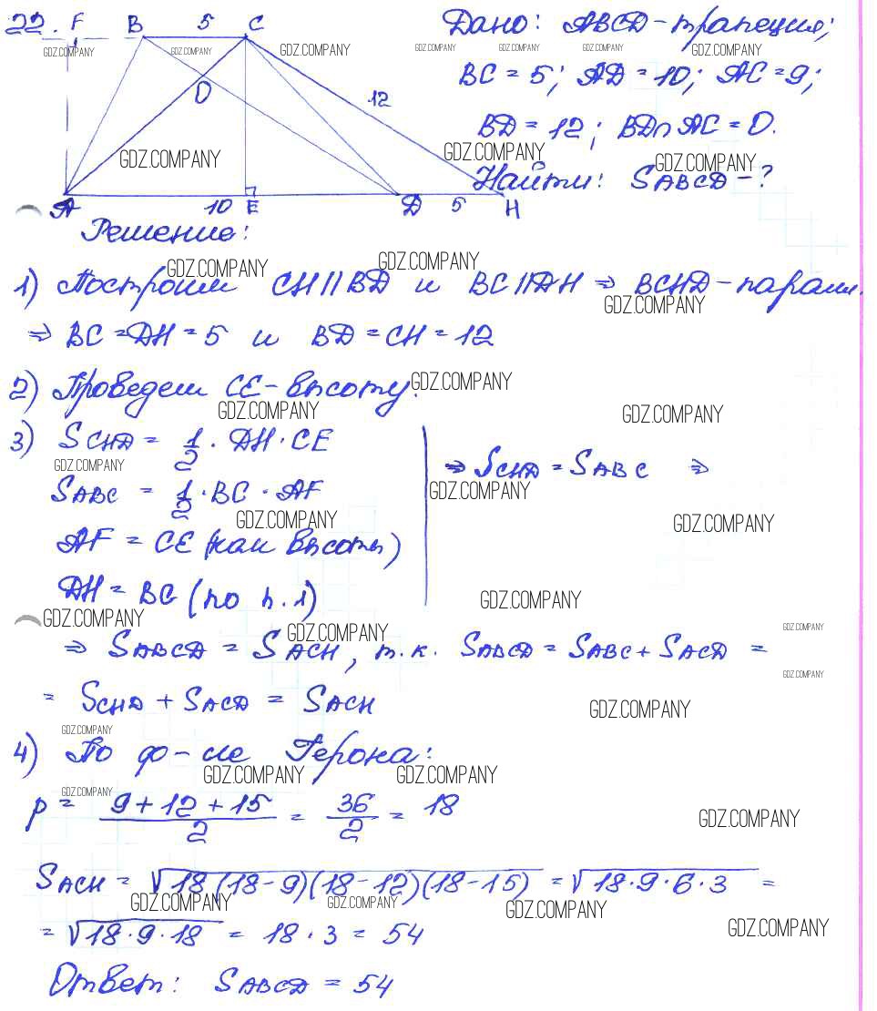 Здесь готовые ответы по Геометрии за 9 (седьмой) класс от Иченская Самостоятельные и контрольные работы (издательство: Просвещение от 2017 г.) № 22