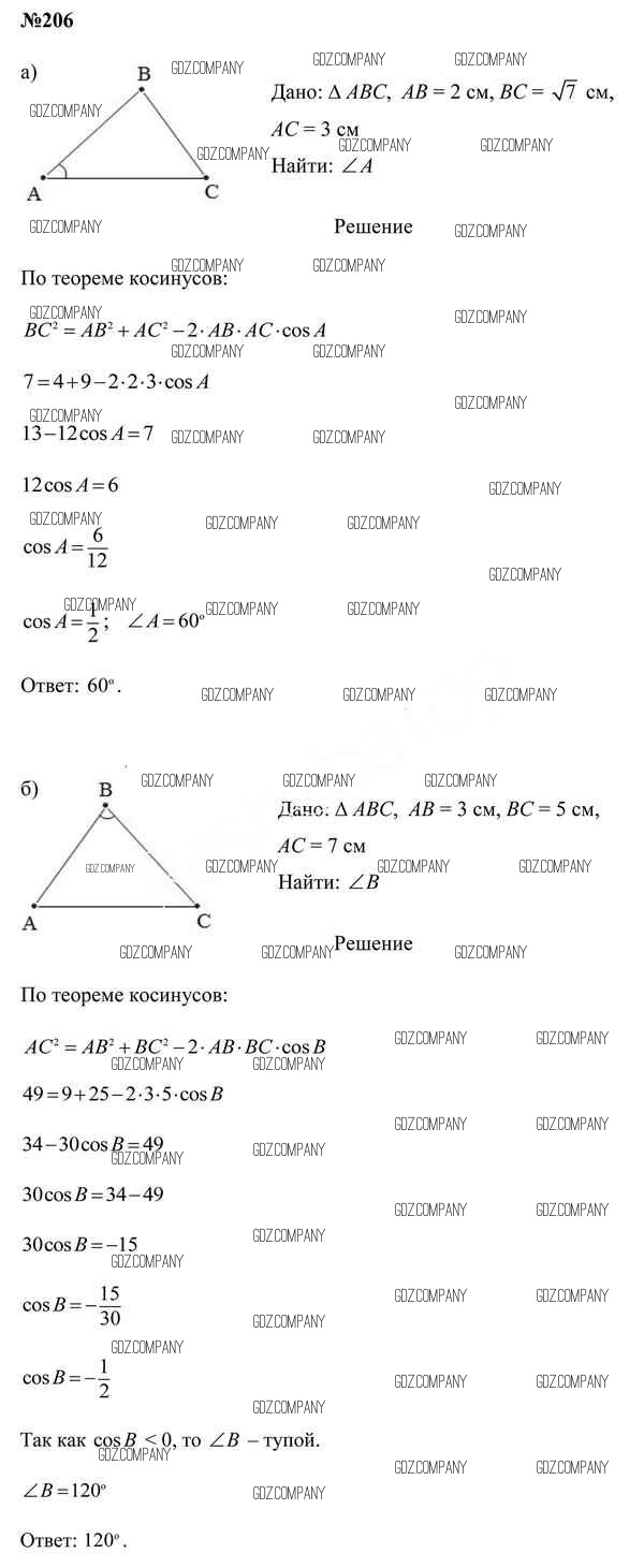 Здесь готовые ответы по Геометрии за 9 (девятый) класс от Казаков Учебник (издательство: Народная асвета от 2019 г.) № 206