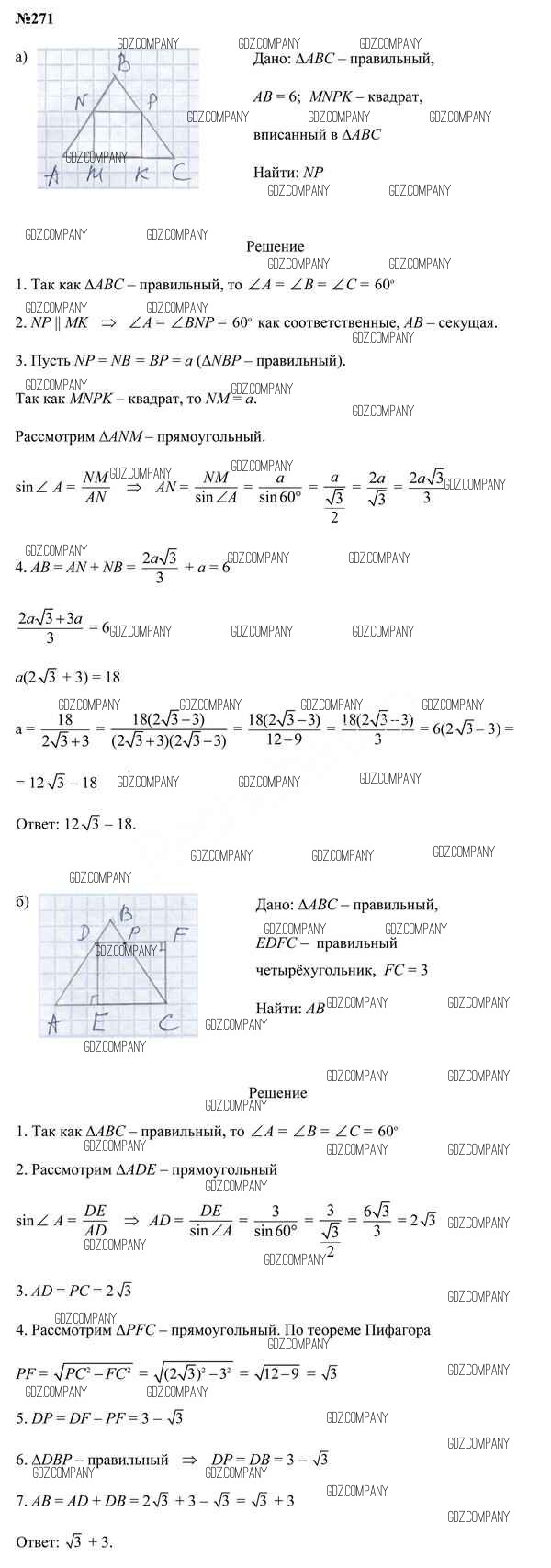 Здесь готовые ответы по Геометрии за 9 (девятый) класс от Казаков Учебник (издательство: Народная асвета от 2019 г.) № 271