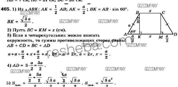 Здесь готовые ответы по Геометрии за 9 (девятый) класс от Мерзляк, Полонский, Якир Учебник (издательство: Вентана-граф от 2016 г.) № 465