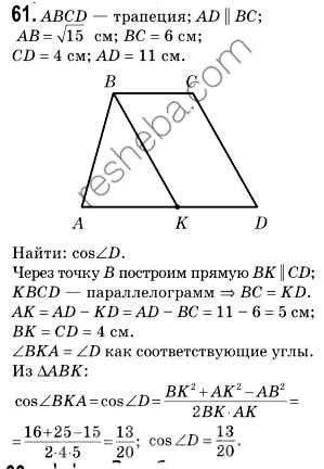 Здесь готовые ответы по Геометрии за 9 (девятый) класс от Мерзляк, Полонский, Якир Учебник (издательство: Вентана-граф от 2016 г.) № 61