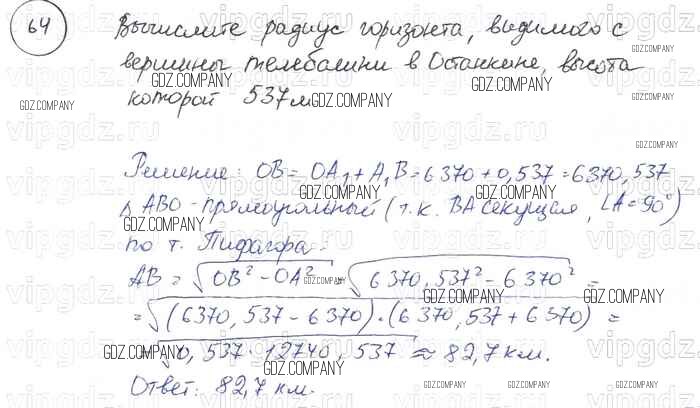 Здесь готовые ответы по Геометрии за 9 (седьмой) класс от Погорелов Учебник (издательство: Просвещение от 2014 г.) № 64