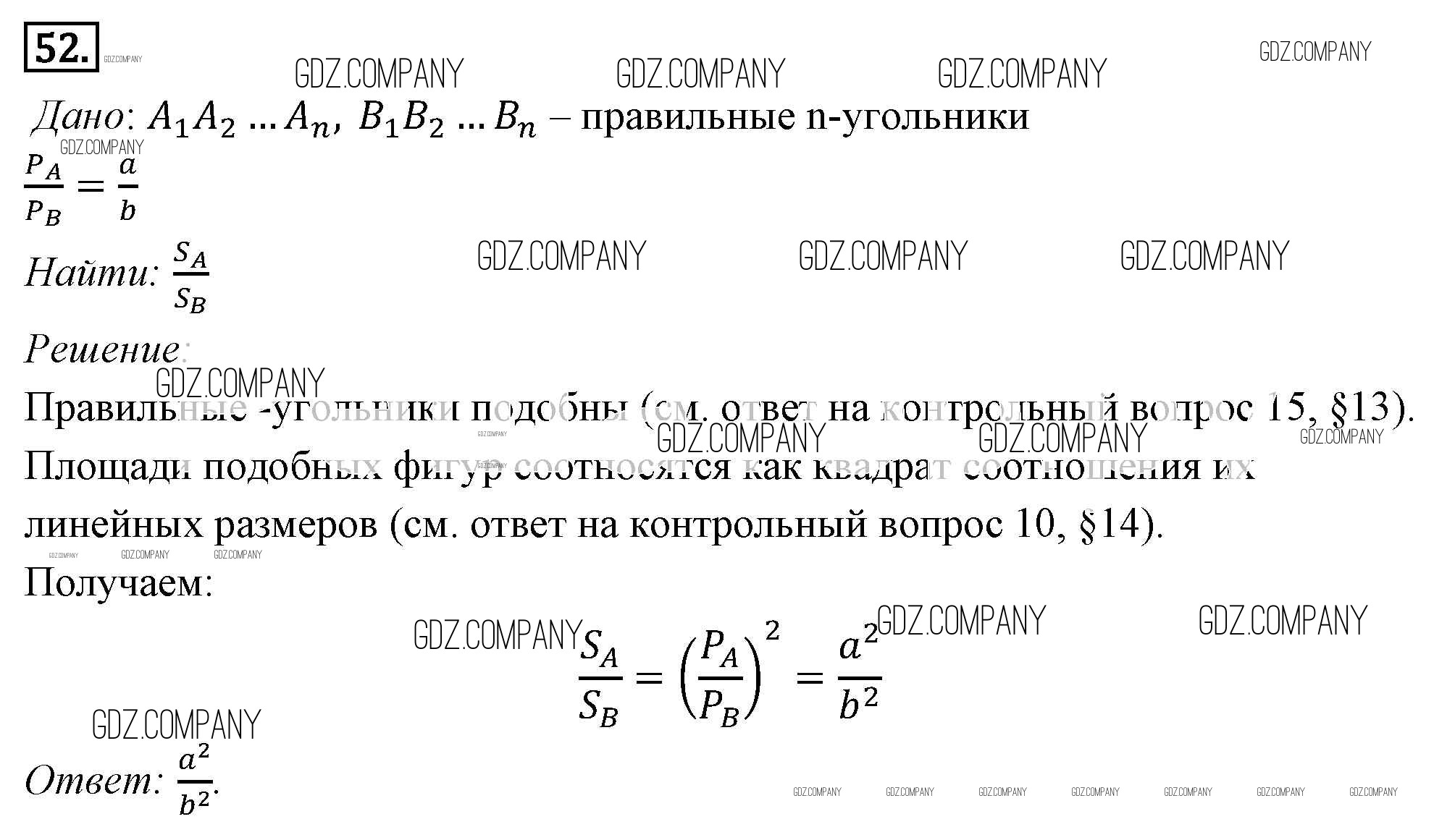 Здесь готовые ответы по Геометрии за 9 (седьмой) класс от Погорелов Учебник (издательство: Просвещение от 2014 г.) № 52